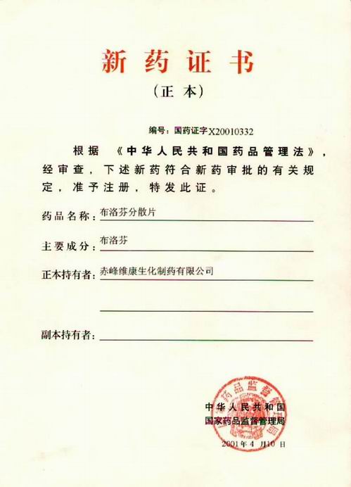 新 藥 證 書
