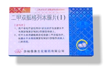 本品為復(fù)方制劑,其組分為鹽酸二甲雙胍與格列本脲。